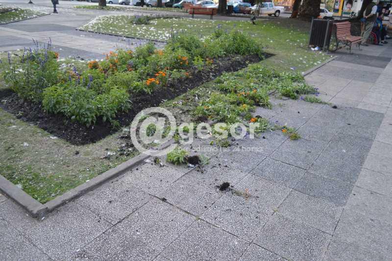 Insólito: Mujer descontrolada arrancó plantas de un cantero de la Plaza Independencia