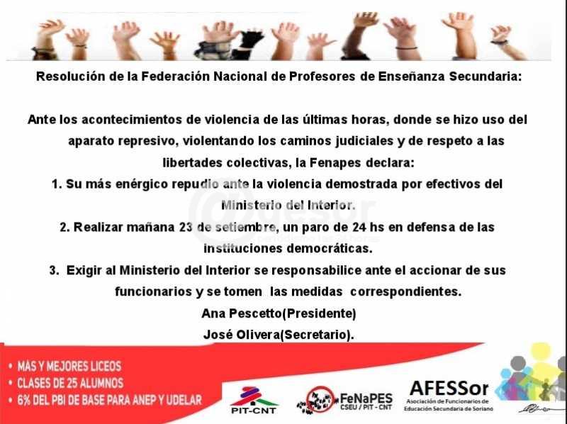 2. Realizar mañana 23 de setiembre, un paro de 24 hs en defensa de las instituciones democráticas.