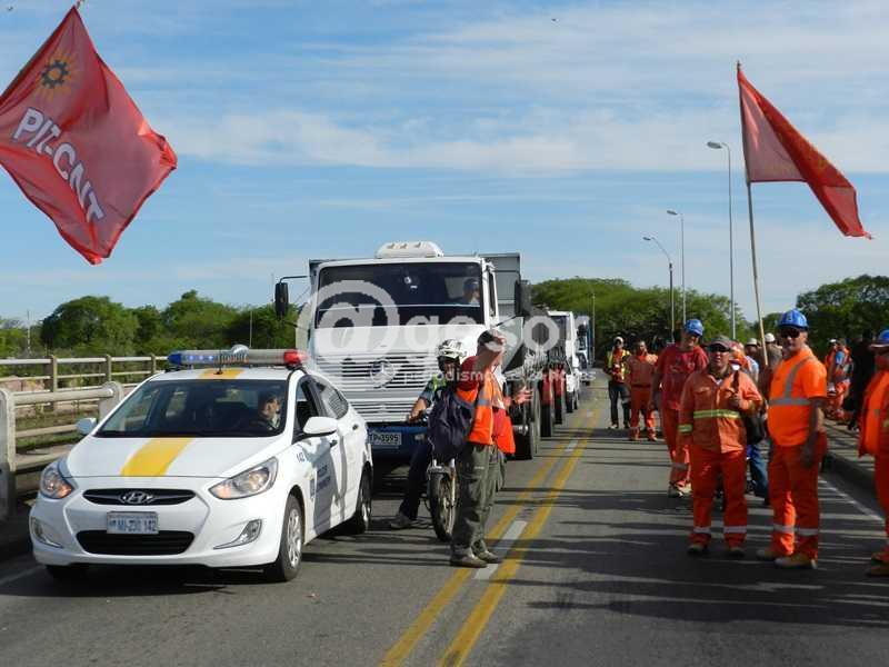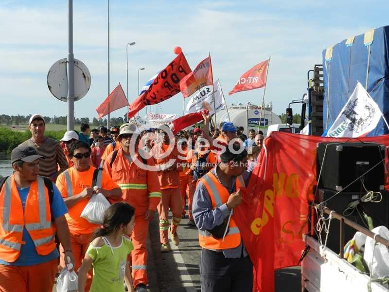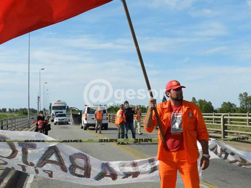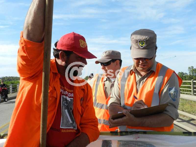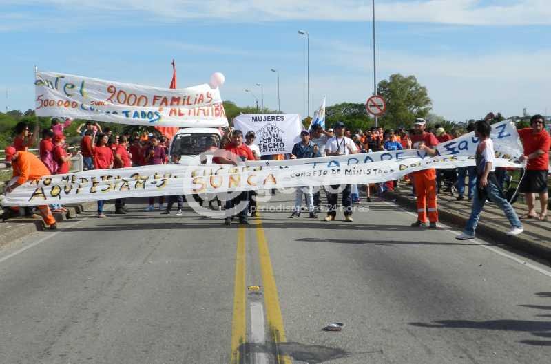 El SUNCA y el Movimiento Sin Techo realizaron movilización con corte de ruta en el puente sobre el río Negro, reclamando fuentes de trabajo y atención para la construcción de viviendas.
