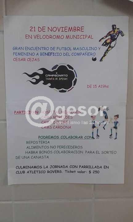 Este sábado, en el velódromo municipal de Mercedes, se reúnen para jugar al fútbol equipos masculinos de Hospital Mercedes, CAMS Dolores, CAMS Mercedes y Diario Acción. Esta actividad se iniciará a las 15.00 horas.
