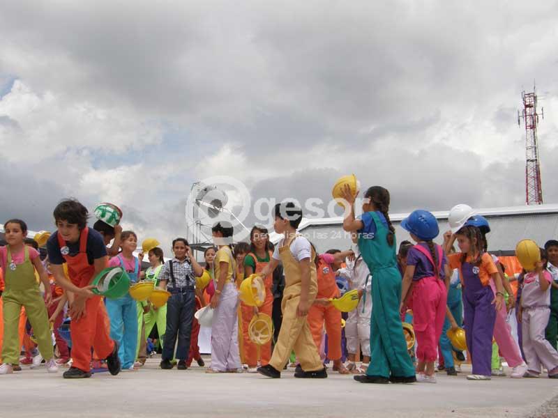 La parte final del acto fue todo alegría. Los niños vestidos como obreros, con cascos y overoles, bailaron, cantaron e hicieron música con improvisados instrumentos de percusión: un tarro pintado, o una lata que rítmicamente hicieron sonar contagiando al auditorio que los acompañó haciendo palmas. Una verdadera fiesta donde los mas pequeños demostraron una vez más que para festejar y divertirse solamente hay que tener ganas e imaginación para hacerlo.