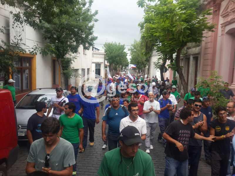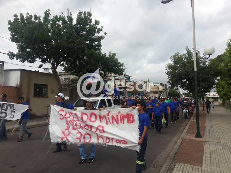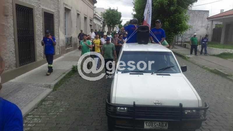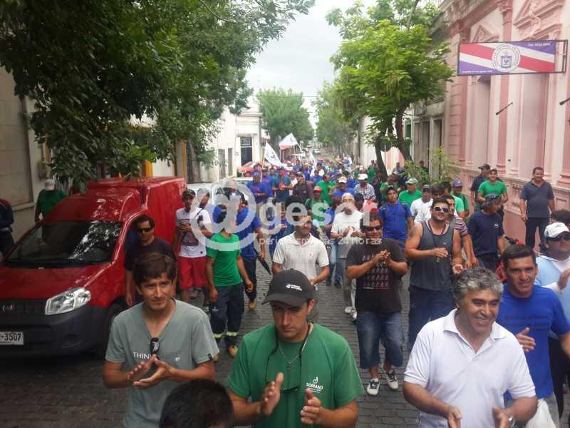 A las 9.10 horas y tras recorrer varias calles de Mercedes los trabajadores llegaron al Palacio Municipal, algunos ingresaron reclamando la presencia del Intendente Agustín Bascou para hablar con él, habiéndose señalado por parte de integrante de la directiva sindical que no está prevista la toma del edificio.