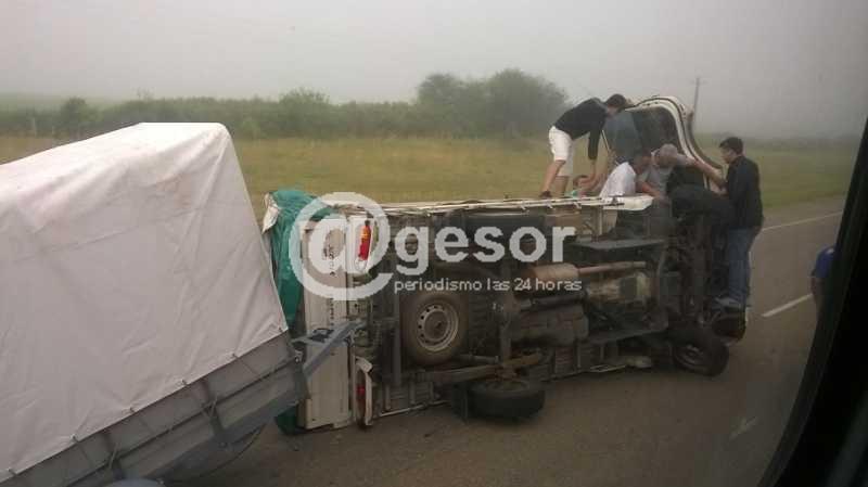 En inmediaciones del Peaje ubicado sobre ruta 2, rumbo a Fray Bentos, se registró un accidente de tránsito espectacular protagonizado por un vehículo tipo utilitario que terminó volcando. El hecho se suscitó en la mañana de este jueves, y varios lectores de @gesor enviaron a su fotografía a la producción de nuestra Agencia de Noticias.