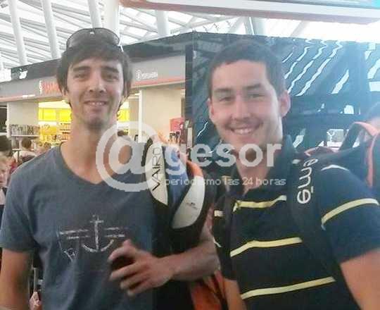 El mercedario Gastón Dufau y el duraznense Andrés Pintos, campeones del mundo en Paleta con pelota de cuero -título alcanzado bajo la dirección técnica de Rossano Perrone (del Centro Pelotaris Mercedes)-, partieron este jueves hacia Francia, donde participarán de la 20ª edición del Open Internacional de Pelota Vasca.