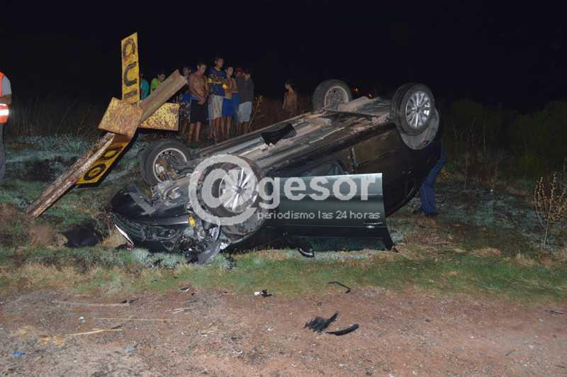 Alrededor de las 22:30 horas de este miércoles se registró un espectacular vuelco de automóvil conducido por una mujer de 43 años. El siniestro se produjo en una de las curvas existentes en Camino de los Argentinos (con pavimento totalmente desnivelado), a la altura del cruce de la vía férrea, cuando el vehículo marca Volswagen, matrícula KMB-4555, iba con dirección de Sur a Norte en base a la información recabada en el lugar.