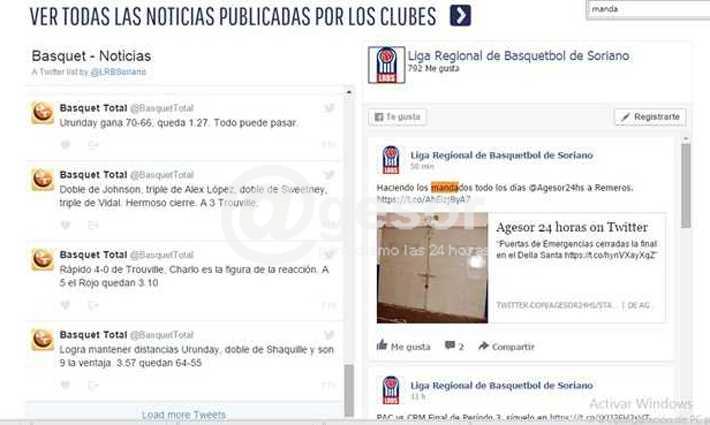 Alertados por algunos lectores, @gesor tomó conocimiento este sábado de un comentario aparecido en la cuenta de facebook de la Liga Regional de Básquetbol de Soriano, en el que se acusa a nuestra agencia de noticias de “hacer los mandados” al Club Remeros Mercedes. De manera sorpresiva, a poco de ser publicado el comentario fue eliminado. Textualmente el mismo señalaba: “Haciendo los mandados todos los días @gesor 24 horas a Remeros”.