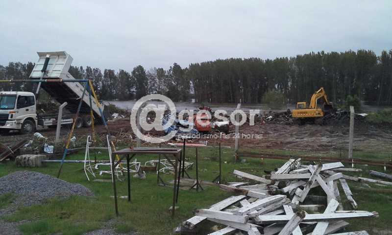 En Dolores, tras el tornado del pasado viernes, avanzan los trabajos de retiro de escombros desde la zona afectada, totalizando 2034 viajes de camión (750 el sábado, 634 el domingo y 650 este lunes).
