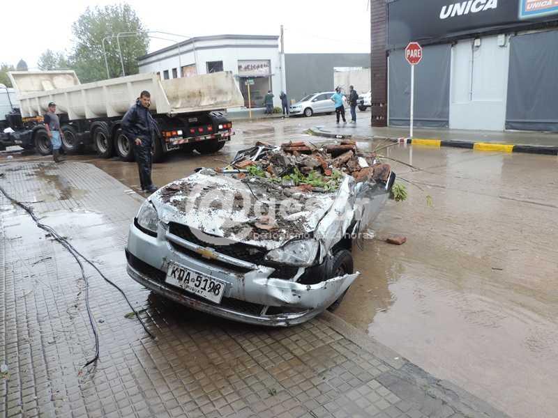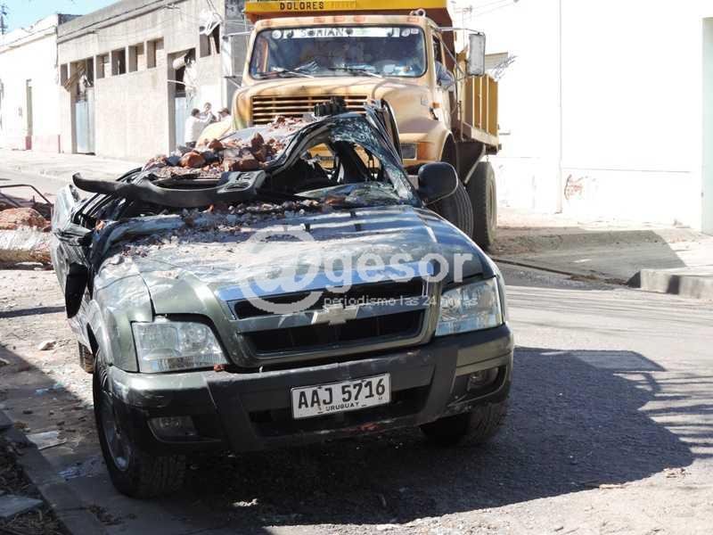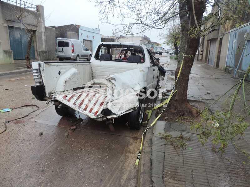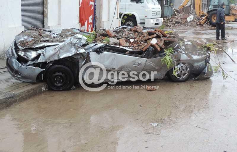 Ha pasado una semana del tornado de Dolores y siguen apareciendo secuelas por toda la ciudad de los daños que provocó. Recorriendo sus calles pueden verse las ruinas que el viento causó en numerosas construcciones, aunque algunas de ellas ya debieron ser demolidas, ante el riesgo que presentaban, de desmoronarse, como el caso del edificio de la Iglesia Evangélica ubicada sobre Calle Varela. El número de víctimas fatales y de heridos (más de 200) revela la magnitud de la catástrofe. Pero más allá del penoso saldo de víctimas humanas y del deterioro que puede observarse en todo tipo de edificaciones, hay otros destrozos que demandarán gastos difíciles de precisar. En ese sentido, las roturas causadas en muchos vehículos que estaban estacionados en la vía pública al momento de producirse el fenómeno evidencian también el grado de destrucción, como muestran algunas de las imágenes registradas por el equipo periodístico de @gesor durante la cobertura que venimos haciendo desde que ocurriera el desastre natural. La potencia eólica y la voladura de chapas, postes y ladrillos afectó varios automóviles de enorme valor, carros de comida y maquinaria agrícola, volteándolos en algunos casos y causándoles todo tipo de abolladuras.