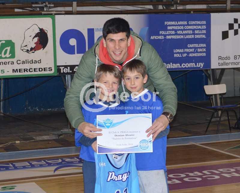 Durante la inauguración del piso flotante del Estadio “Alberto Della Santa” del Club Atlético Praga, previo al partido de juveniles Praga-Sandú Chico, el ex jugador praguense, Demian Álvarez -quien hace varios años actúa en el baloncesto de Montevideo (con presencia incluso a nivel de selecciones uruguayas)-, fue objeto de una distinción muy especial. Álvarez recibió una camiseta de Praga y un diploma que oficializa su designación como padrino del grupo de formativas de los celestes, como @gesor informa por separado.