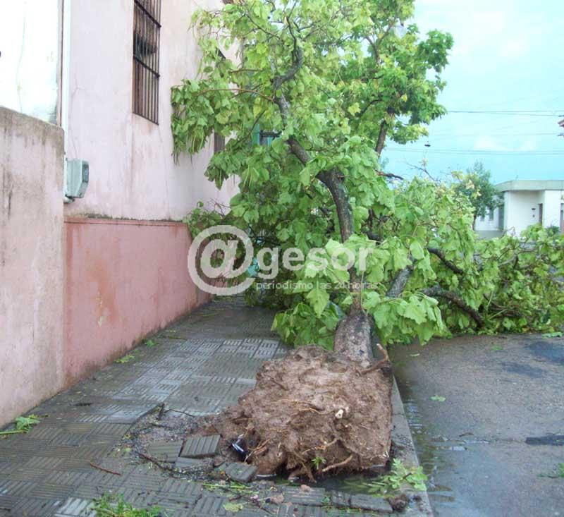 La zona Sur de Dolores fue la mas afectada por el fuerte viento con características de turbonada que provocó la caída de numerosos árboles, tendido eléctrico y más de 40 techos de viviendas y galpones.