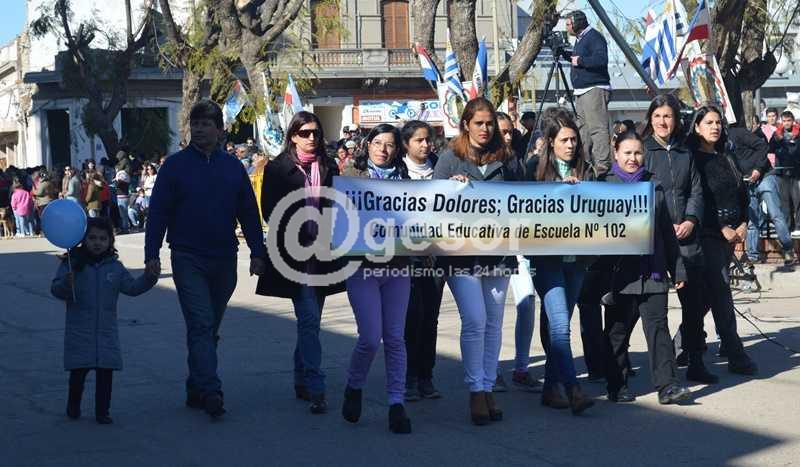Como es habitual en estos casos el desfile lo encabezaron las instituciones educativas, Escuelas, Liceos, UTU, Centro de Formación Docente, etc. seguida de instituciones sociales y deportivas. También participaron del desfile representantes de los gremios nucleados en el Plenario Intersindical de Soriano, cuyos integrantes colaboraron también en la asistencia y reconstrucción de Dolores.