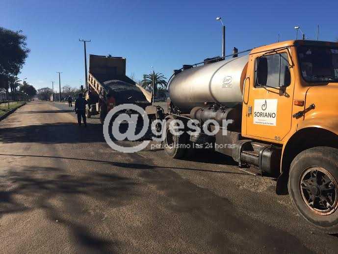 Equipos del Departamento de Obras de la Intendencia de Soriano vienen realizando un intenso despliegue en diversos puntos de Mercedes y localidades del interior, realizando bacheo con diluidos asfálticos en caliente.