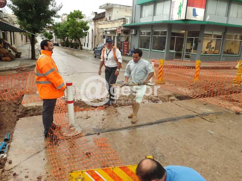 El tránsito debió interrumpirse por espacio de varios minutos en la esquina de Rodó y Gomensoro de la ciudad de Mercedes, dado el riesgo que corrían especialmente los conductores que transitaban junto a sus vehículos por la zona mencionada. Justamente en esa intersección quedó abierta una zanja de tamaño considerable en virtud del importante caudal de agua que corría por ese lugar, tratándose de una de las zonas afectadas por las obras que viene llevando a cabo personal de OSE. Según muestra la imágen @gesor, los mismos inspectores de tránsito, junto a vecinos, debieron oficiar de obreros con herramientas en mano, a los efectos de tapar con tierra la enorme zanja que había quedado al descubierto y que ponía en peligro a conductores y transeuntes que circulaban por calle Rodó.