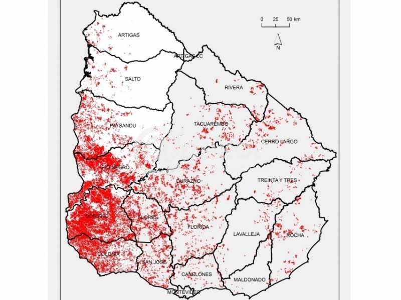 De todas maneras en Soriano es donde se concentra la mayor cantidad de las chacras con cultivos de verano para grano seco, zafra 2015/16