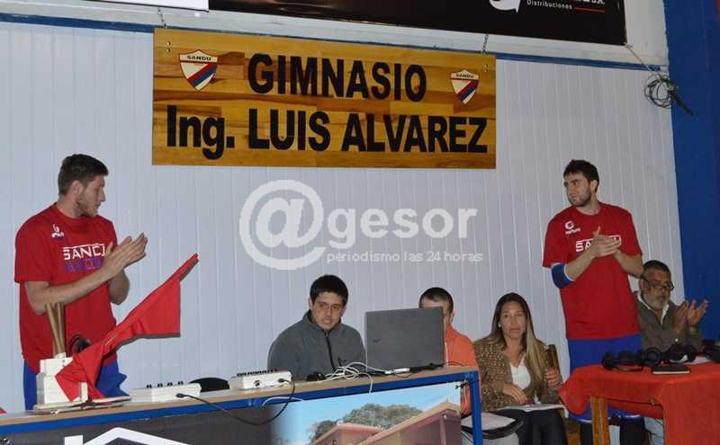 Previo al partido que este sábado marcó el debut de Sandú Chico y Praga en el Torneo Competencia de la Liga Regional de Básquetbol de Soriano, cumplido en el gimnasio del primero, se realizó la anunciada ceremonia por la cual se reinauguró ese escenario y se le designó “Ingeniero Luis Álvarez”, en presencia del homenajeado. Se proyectó un vídeo, repasando en imágenes la construcción del gimnasio y las mejoras que se han introducido últimamente, como la instalación de piso flotante, tras lo cual hizo uso de la palabra el dirigente Oscar Méndez. De inmediato dos de los jugadores del actual plantel de baloncesto de Sandú Chico, Huamani Millán y Lucas Lepiani, descubrieron el rótulo con el nombre de la tribuna, reconociéndose con esa designación a un desaparecido luchador del club, Luis “Vasco” Soto. Acto seguido se dirigió al público un nieto del homenajeado, Matías Soto, quien fuera campeón con Sandú, y que está radicado en Montevideo. A continuación otros dos jugadores del plantel tricolor, Gianno Belase y y el fraybentino Pablo García, descubrieron el rótulo con el nombre del gimnasio. El Ingeniero Luis Álvarez ha sido, entre otras funciones desempeñadas, presidente del club (1990-2008). Por último el propio Ingeniero Luis Álvarez cortó la cinta simbólica que dejaba reinaugurado el escenario que hoy lleva su nombre, siendo acompañado por el actual presidente, Diego Caffera. Para la familia de Sandú Chico fue una noche que quedará en el mejor recuerdo de la institución.