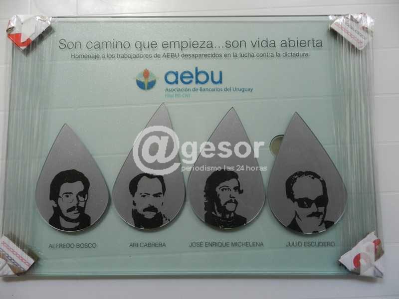 El acto realizado este mediodía en la sede de AEBU de Mercedes contó con la presencia de la familia de Alfredo Bosco. En la oportunidad Fernando Iraola, secretario del interior de AEBU recordó el sindicato bancario tiene “elementos que siempre, en todos los documentos está, que es el tema de la memoria. Todos los años, documento tras documento , el sindicato hace un aparte en el tema Derechos Humanos. Y más allá que bregamos por todos los Derechos Humanos, el tema de la memoria y de lo que pasó, para que esto quede en los jóvenes que nos siguen a nosotros , que esté siempre la llama prendida , y que esto no debe pasar nunca más , es que resolvió el Consejo Central y así lo estamos repitiendo en todas las asambleas, es que en todos los locales que AEBU haya un cartel ,un cuadro, o una recordación a los 4 compañeros desaparecidos que el sindicato tiene. Hoy con excelente criterio se le hizo un homenaje al “Tito” (Bosco) . En unos días en el Banco Hipotecario se va a hacer un homenaje al compañero escudero; y queremos que en todos los locales que el sindicato tiene luzca este recuerdo a los 4 compañeros desaparecidos para que todo aquel que venga al sindicato vea la foto de Alfredo Bosco, Ari Michelena, José Enrique Michelena, y Julio Escudero”.
