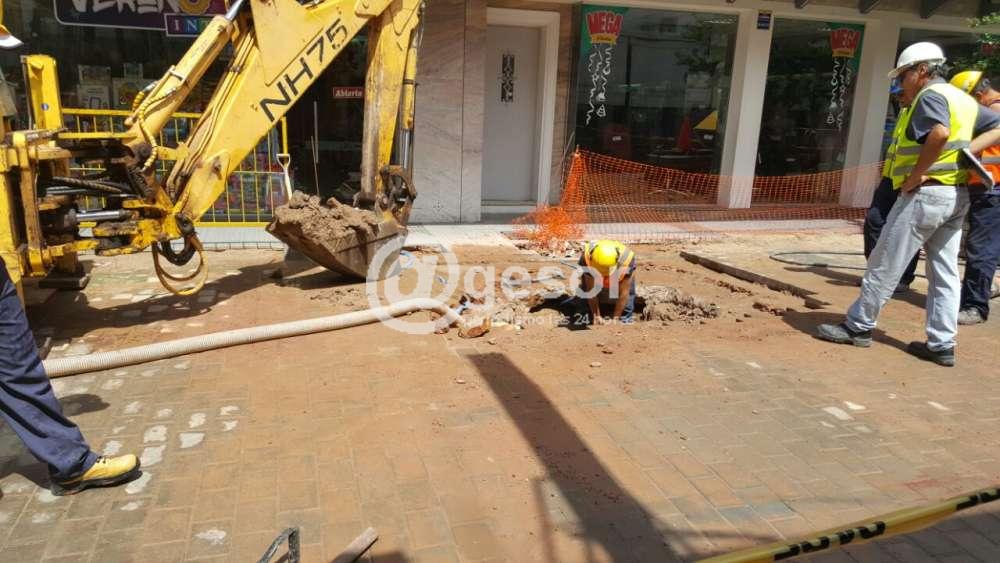 Debido a una rotura en la línea madre de abastecimiento de agua potable de OSE en calle Colón entre Ferreira Aldunate y Rodó, las obras de la semipeatonal se debieron interrumpir en ese sector.