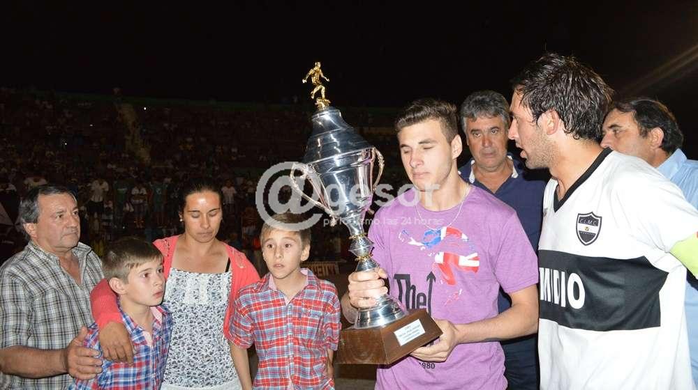 El trofeo conquistado por el campeón del fútbol mercedario, Con Los Mismos Colores (CLMC), fue entregado a la familia de Alejandro Peduzzi.