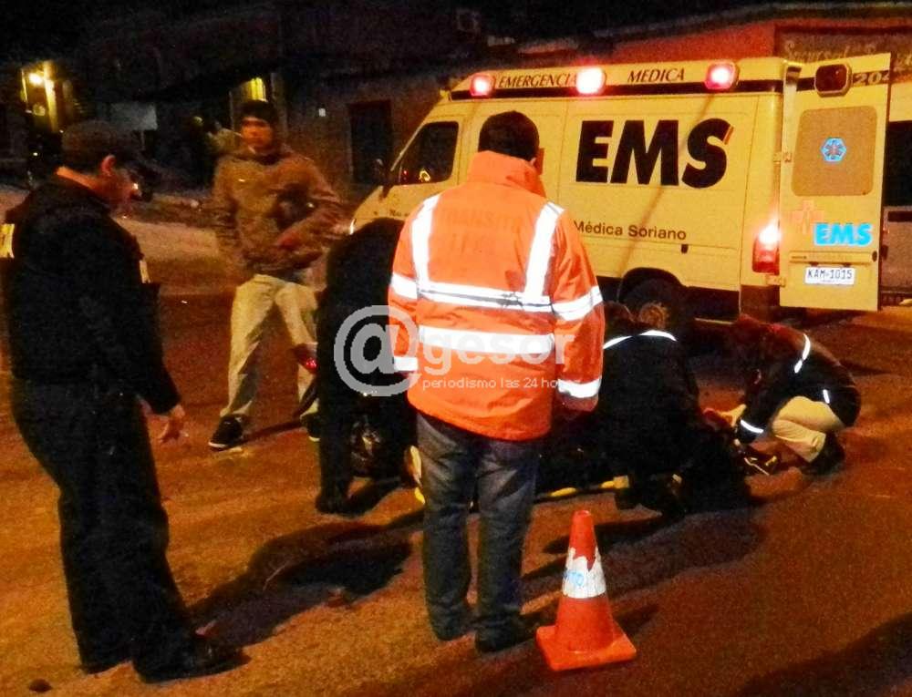 En la madrugada fue atendido por seccional 1a. siniestro de tránsito ocurrido en avenida Fregeiro casi intersección con calle Artigas, donde se establece que en circunstancias que la moto Yumbo modelo GS2, KMX 270, circulaba con dirección al oeste, guiada por el masculino W. F. L. G. de 41 años, por causas que se investigan perdió el dominio del rodado impactando contra dos camionetas Nissan y Fiat Fiorino, que permanecían estacionadas sobre mano derecha de avda. Fregeiro, ocasionándole daños al segundo de los rodados. Trasladado dicho individuo en ambulancia a nosocomio de Mercedes, se le certificó politraumatizado grave, fractura de maxilar inferior, sido trasladado al CTI de Colonia. Se dio intervención a Brigada de Tránsito Municipal y trámite a la Justicia.