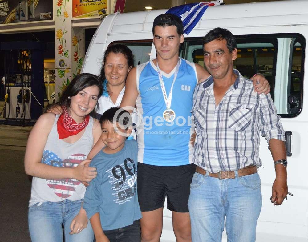 Arribaron este lunes a Mercedes los atletas que participaron de los Juegos Escolares realizados en Medellín, donde Lautaro Techera logró la única medalla de oro para Uruguay.