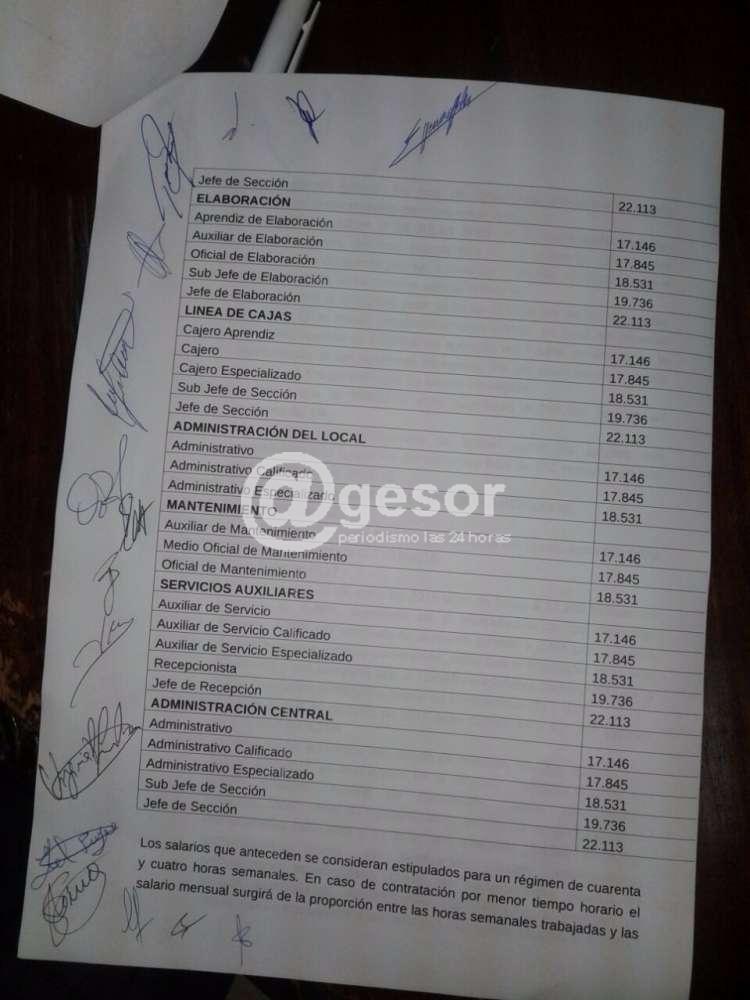 El su parte medular el documento establece una escala de salarios que van de los $ 17 mil a los $ 22 mil, y que pueden apreciarse en la segunda fotografía que acompaña esta nota.