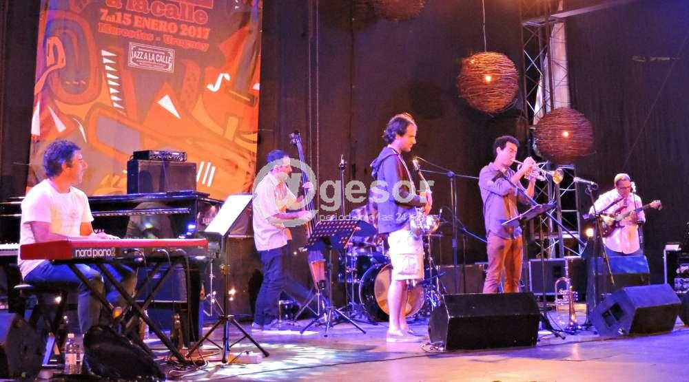 El “Mónico Aguilera Sexteto” cerró la noche del martes en el 10° Jazz a la calle. Este sexteto ofició de local con una formación sólida presentando a un grupo de virtuosos en cada uno de los instrumentos: trompeta, saxo tenor,bajo, batería y guitarra.