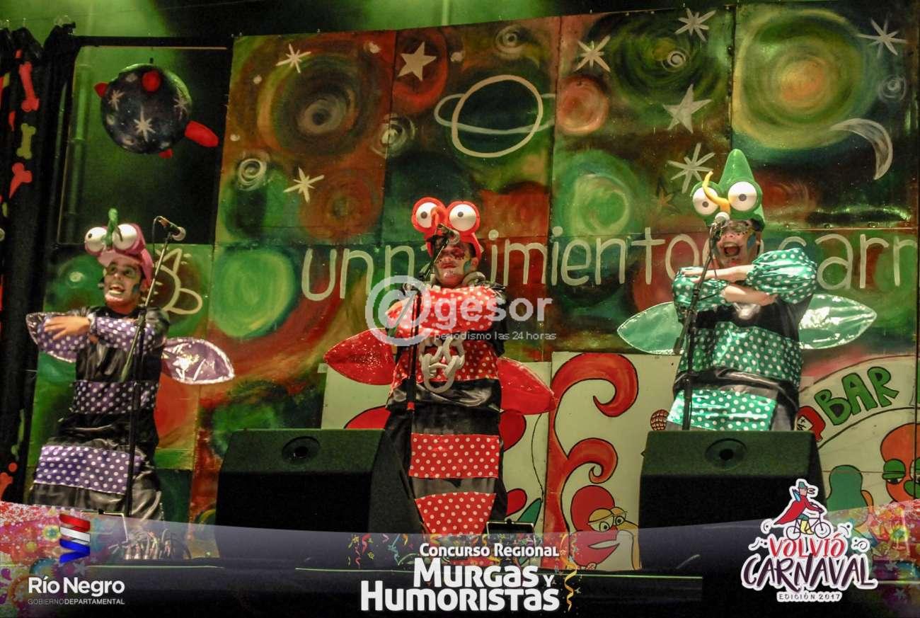 Mientras tanto en la madrugada de este domingo, el jurado del Concurso de Agrupaciones del Carnaval de Río Negro, que se desarrolla en el Teatro de Verano de Fray Bentos, determinó las tres murgas y los dos humoristas que este domingo estarán definiendo el título en ambas categorías. En murgas estarán definiendo Sale con Fritas de Mercedes, La Grandulona de Salto, y la de Mar del Plata Lavate y Vamos.