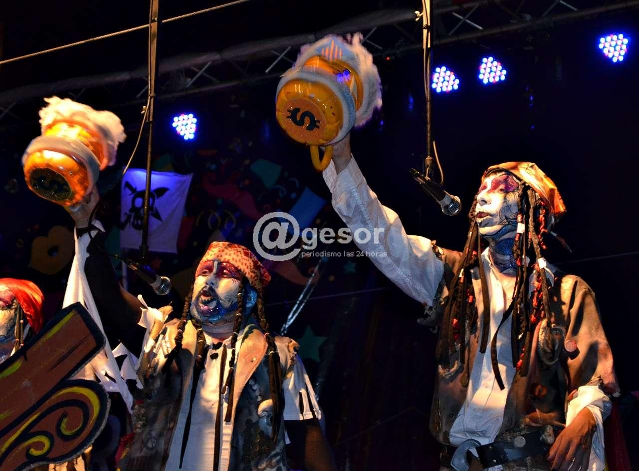 Piratas en busca de los 7 mares, es la propuesta 2017 de la murga Sale con fritas que busca este año retener el primer puesto obtenido en el 2016. Maquillados y con indumentaria que recuerda a los personajes de la película Piratas del Caribe, la murga mercedaria presentó un coro sólido. Luego de la presentación ingresaron a un salpicón vertiginoso y punzante, el segundo de los mares de este espectáculo.
