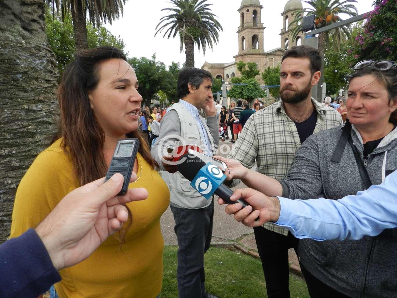 La joven contó lo que estaba ocurriendo en plaza Constitución, "represento a una carroza que se organizó para la Fiesta de la Primavera, y el año pasado no se realizaron carrozas como todos los años, por formar parte y ser una damnificada del tornado, tuvimos la idea, en agradecimiento a todo el pueblo uruguayo, de crear una bandera gigante, un Pabellón Nacional, y llevamos un cartel que decía gracias Uruguay y al mundo entero por todo. La llevamos a diferentes lugares, entre ellos el estadio Centenario, y siempre que haya un momento recordatorio va a estar con nosotros presentes y en agradecimiento a lo que hizo el pueblo uruguayo, es muy significativo y emocionante para nosotros".