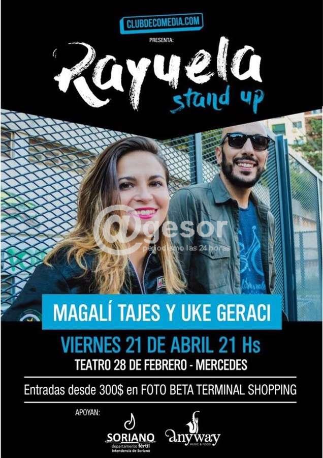 El público mercedario podrá disfrutar de un show humorístico este viernes 21 de abril. Llega la gira de Rayuela Stand Up, con la actuación de los argentinos Magali Tajes y Uke Geraci. Rayuela es un espectáculo donde interactúan stand up y sketches.