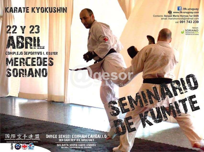El próximo 22 y 23 de Abril se realizará en el Complejo Deportivo Luis Koster de la ciudad de Mercedes (Soriano) el seminario "Fin de semana de Kumite". El curso estará a cargo de Sensei Germán Carballo 3er Dan quien estará dictando el seminario de miras al Torneo Nacional de Kumite que se realizará a mediados de año.