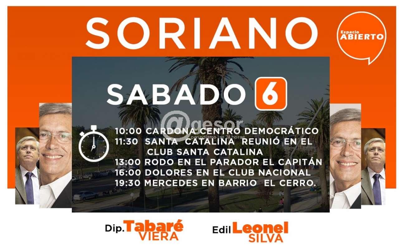 El diputado Tabaré Viera, acompañado del edil Leonel Silva realizan una gira por Soriano este sábado 6 de mayo.