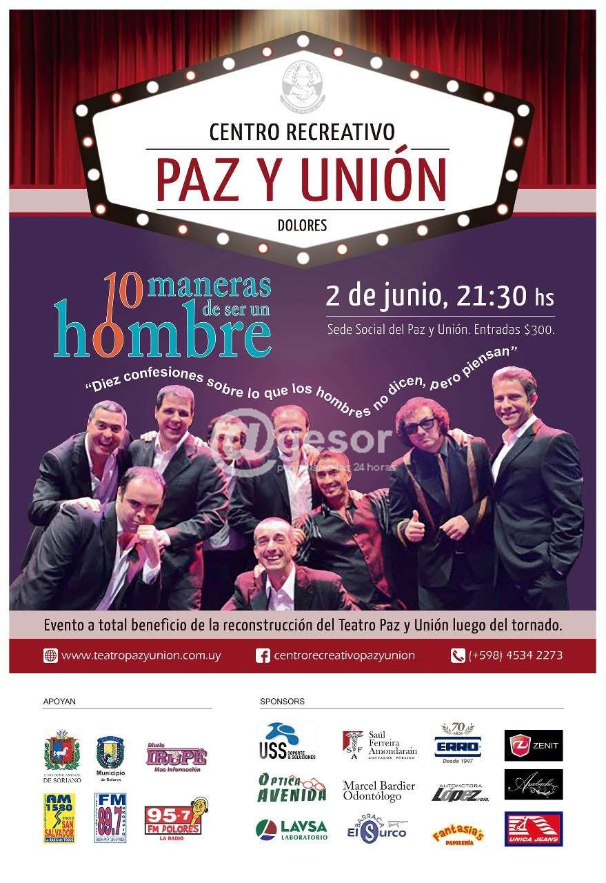 Como había anticipado Agesor, el próximo viernes 2 de junio destacados actores de Uruguay presentarán en Dolores la obra de teatro “10 maneras de ser un hombre”, a las 21:00 horas.