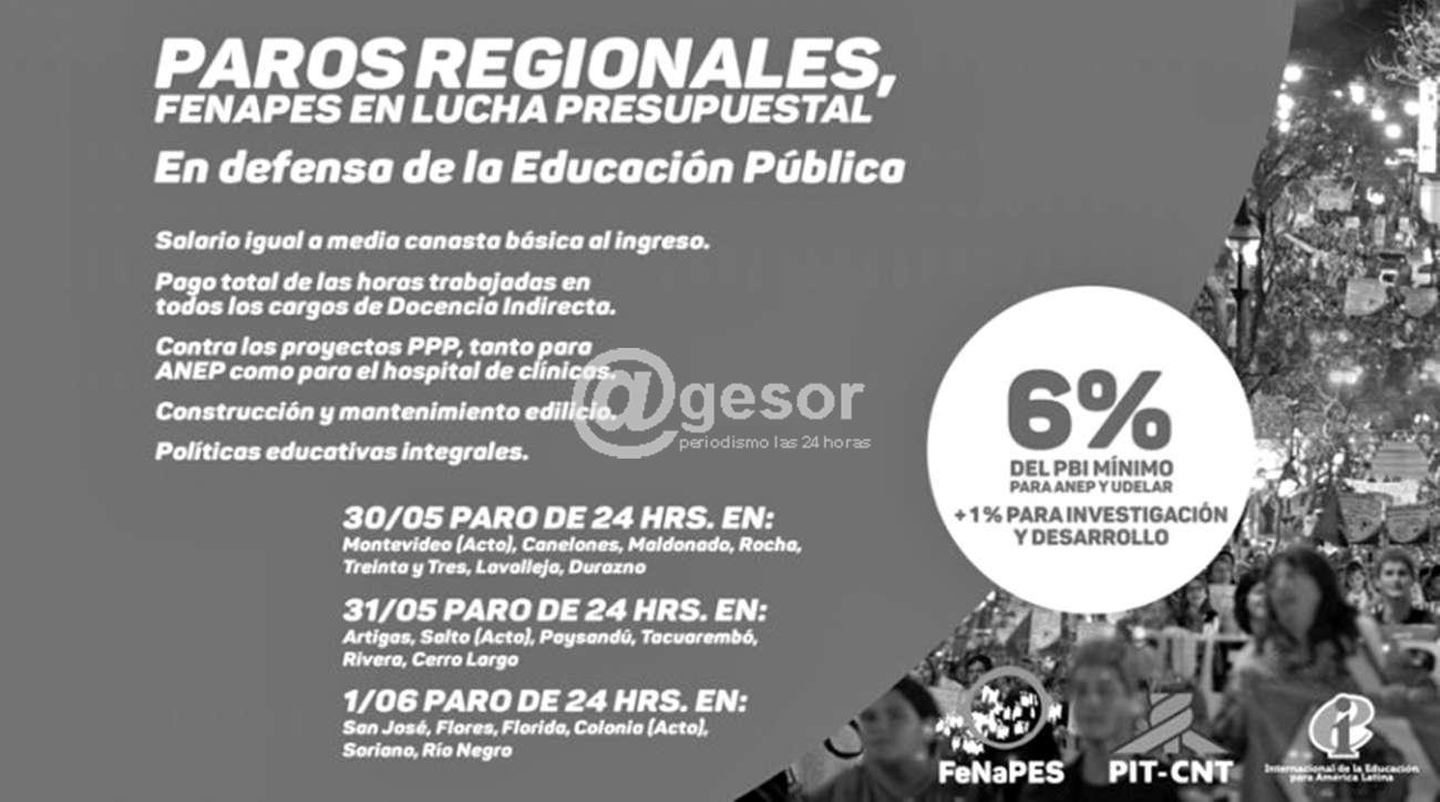 30/05- Paro de 24 hrs. en:Montevideo (acto), Canelones, Maldonado, Rocha, Treinta y Tres, Lavalleja y Durazno.
