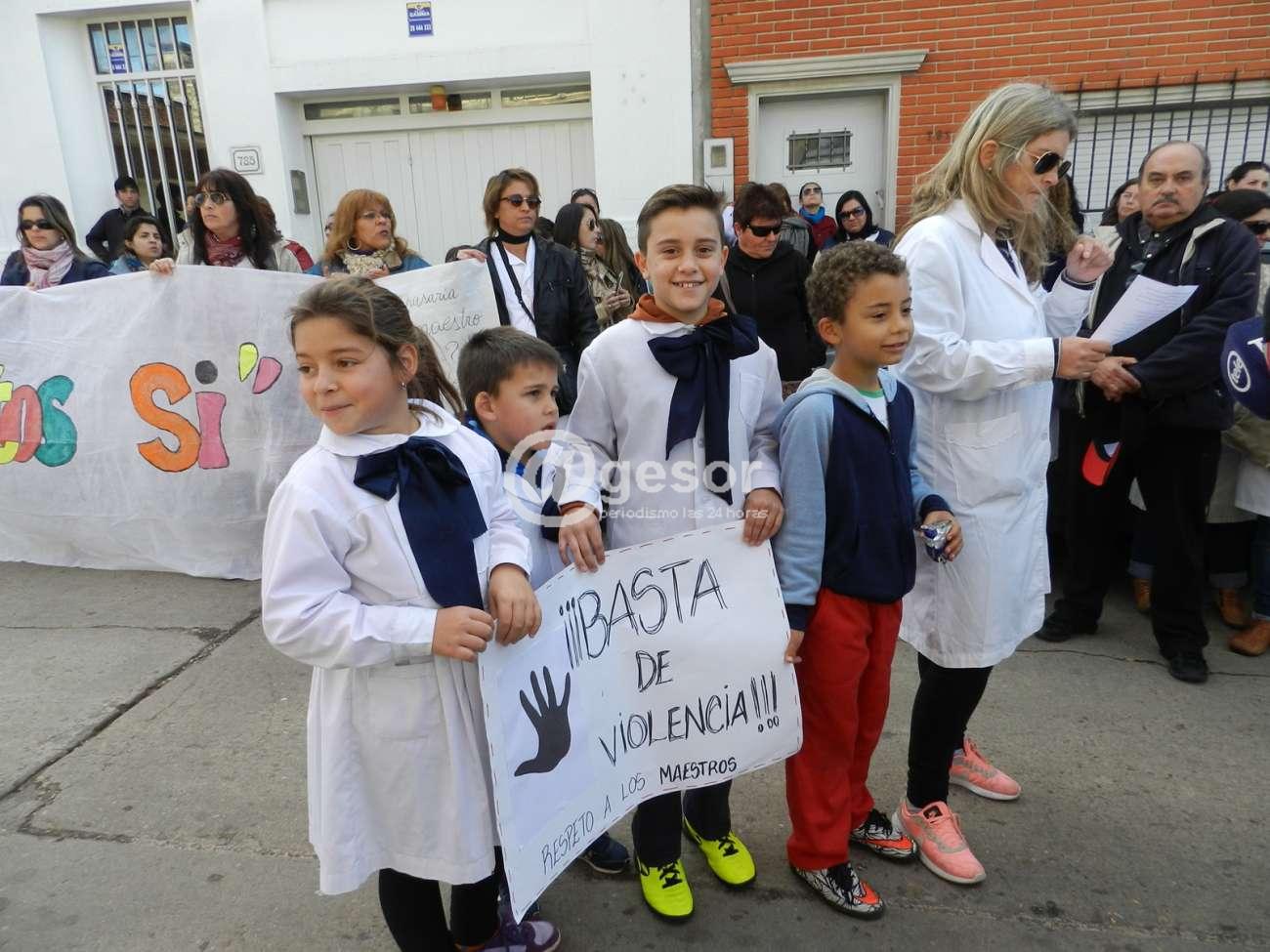 Los maestros se movilizaron este viernes y marcharon desde la escuela Nº 24 hasta la Inspección Departamental de Soriano, de acuerdo a lo dispuesto en la Asamblea de Ademu celebrada en la noche de este jueves en rechazo a la agresión sufrida por una maestra de dicho centro escolar y en rechazo a la violencia en general. Un grupo de casi un centenar de personas compuesto por docentes familiares e integrantes de la comunidad educativa marcharon por calle Lavalleja hasta Ferreira Aldunate y por esta hasta arribar a la inspección Departamental. Allí, la maestra Ana Paula Sánchez presidenta de Ademu filial Soriano leyó la proclama.
