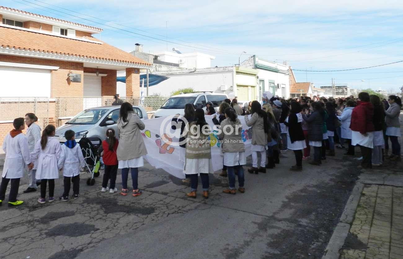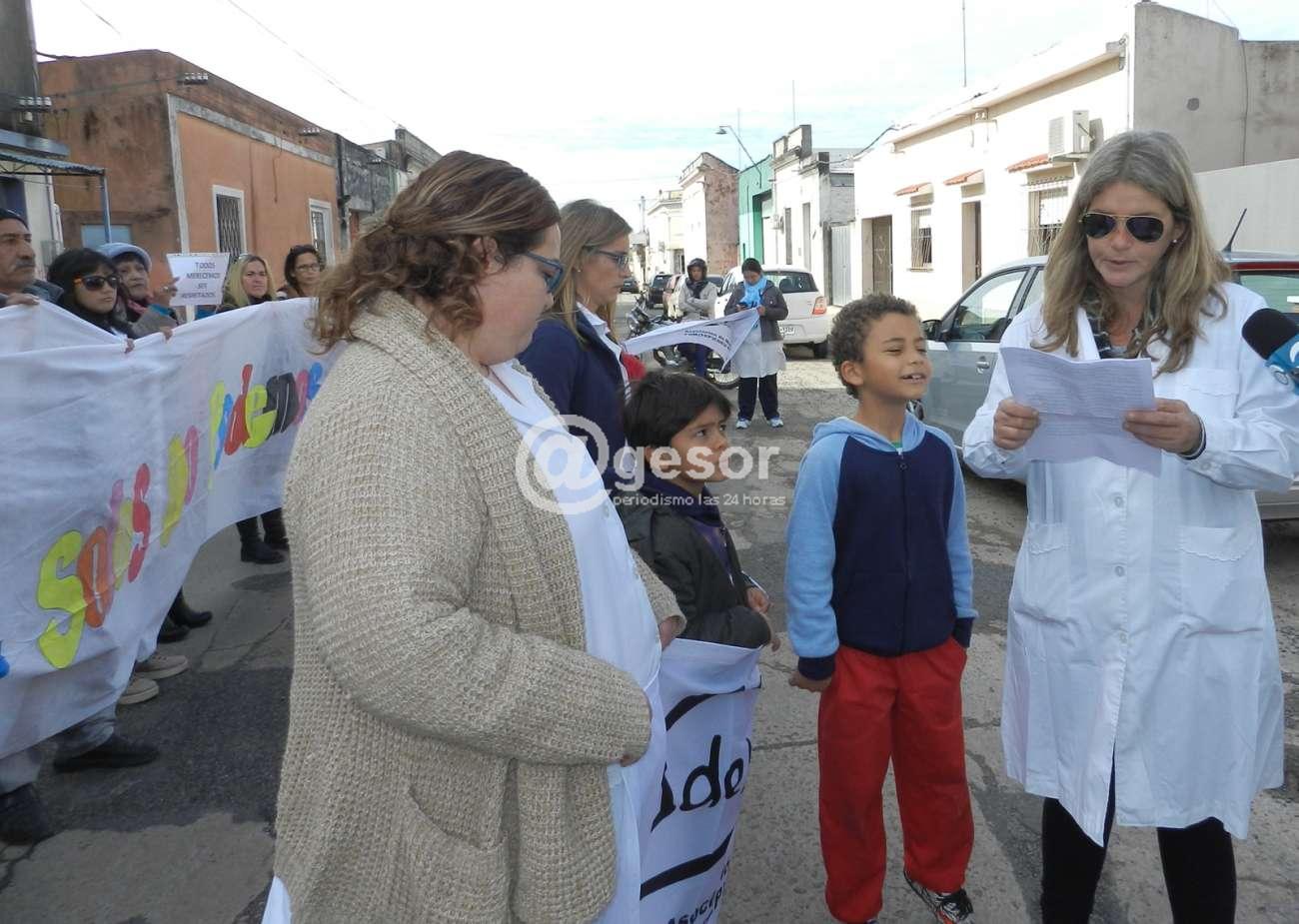 En el marco de la marcha que realizaron al mediodía de este viernes los maestros sorianenses tras la agresión sufrida por maestra de Inicial de la Escuela 24, por parte de una madre de alumno de esa clase, los docentes realizaron una parada frente a la sede del Juzgado de Primer Turno de Primera Instancia de Mercedes, donde se lleyó la proclama, de igual texto a la que se dio lectura frente a la Inspección Departamental de Primaria. Allí también la Presidenta de ADEMU Soriano, maestra Ana Paula Sánchez, confirmó que la maestra agredida y la escuela a la que concurre dicha docente, presentaron denuncia por la agresión sufrida. De acuerdo a lo que pudo averiguar @gesor, la denuncia fue presentada ante la seccional 2a. de Policía, por corresponderle jurisdicción, siendo enterada la sede judicial, y el magistrado actuante dispuso las actuaciones correspondientes y elevación de antecedentes.