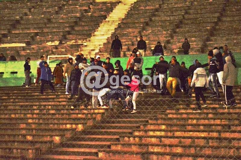 El joven se retiró del terreno pero se dirigió a la tribuna donde se encontraban unos pocos parciales de Sud América, que lo agredieron. Allí intercedieron parciales del Club Roma y por espacio de algunos minutos se produjeron enfrentamiento entre ambas hinchadas. Permaneciendo detenido el juego.