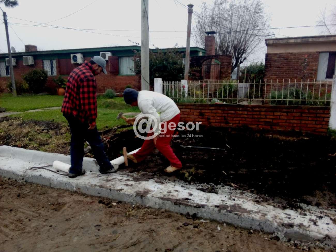 Entre ellas sobresalen los trabajos en barrio Santa Emilia" referidos a la construcción de cordón cuneta en calle continuación Elías Regules, así como también cordón cuneta, bocas de tormentas, desagües y entradas para vehículos hacia predios de vecinos.