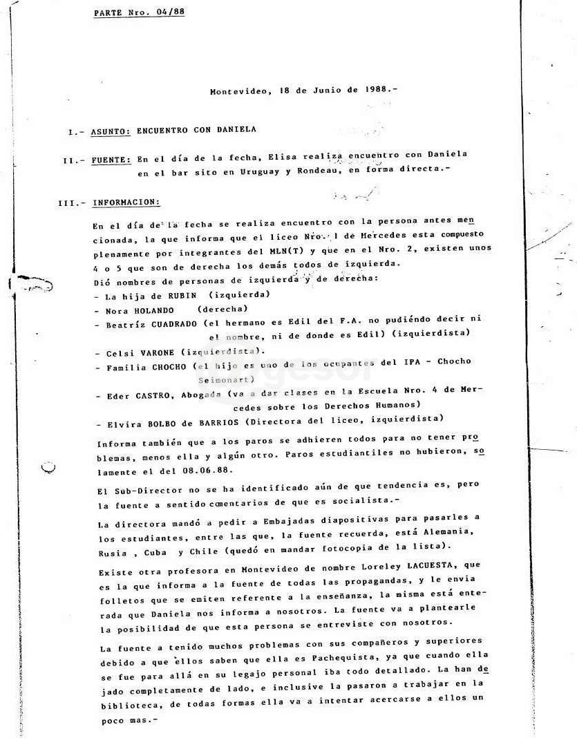 Lo oscuro del hecho radica en la delación, y no en lo que se informara sobre mi madre, ya que ella fue todo lo que en estos ilegítimos e ilegales documentos se afirma. Fue una Docente enamorada de su trabajo, de la Literatura y de la Enseñanza, comprometida con sus estudiantes, los cuales llenaban nuestra casa, para luego convertirse frecuentemente en Docentes. También fue una mujer de izquierda, convencida de que un mundo mejor era posible y de que valía la pena jugarse por construirlo. Así mismo fue una trabajadora de la educación que luchaba por dignificar su trabajo sin importarle el lugar que ocupara. Hoy ella misma es recuerdo y no olvido, porque se sembró en otros entregándose en el proceso.