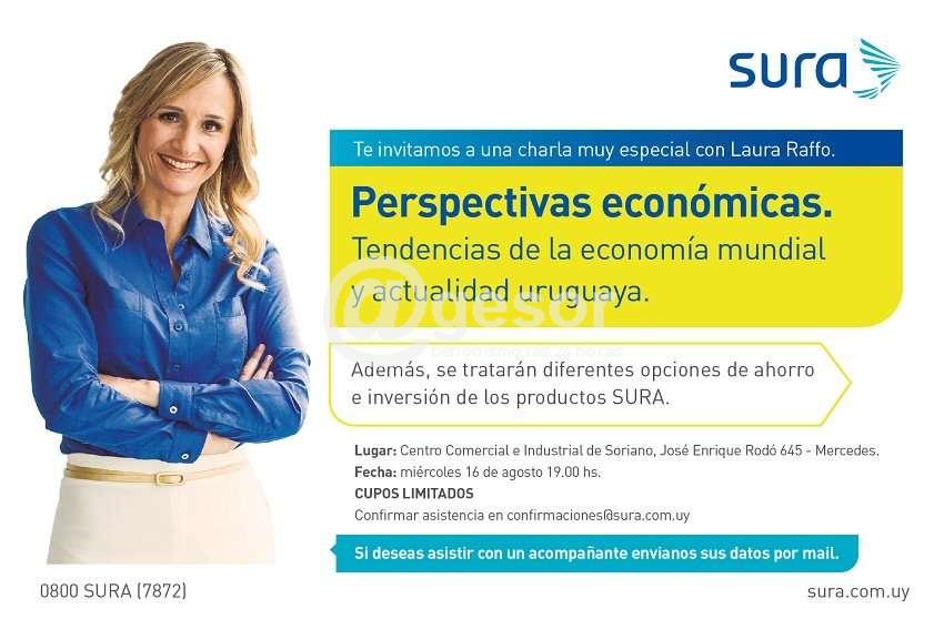 Desde el Centro Comercial e Industrial de Soriano se informa sobre la realización de manera conjunta con SURA de una conferencia denominada "Perspectivas Económicas: el mundo, la región y Uruguay", el objetivo de la empresa es difundir información que permita a quienes concurran al evento estar en condiciones de tomar mejores decisiones, en el marco de un panorama económico complejo y caracterizado por la incertidumbre.
