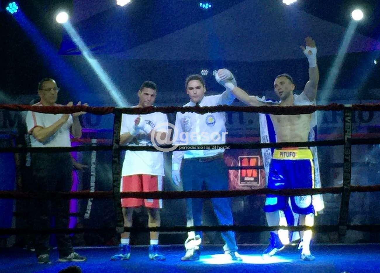 El "Pitufo" Viera tras un primer round bastante parejo, hizo la diferencia en el segundo donde el juez le tuvo que efectuar cuenta de protección al visitante cuando restaban 39" para finalizar la segunda vuelta.