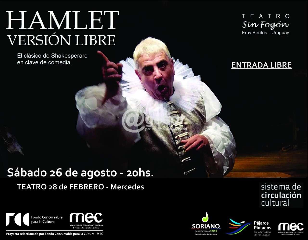 En el marco de las actividades agendadas por el denominado Corredor "Pájaros Pintados" este sábado 26 de agosto se presenta teatro "Sin Fogón" de la ciudad de Fray Bentos. Este reconocido elenco pondrá en escena “La tragedia de Hamlet”, en versión humorística.