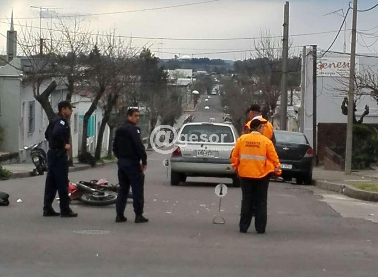 Alrededor de las 15.15 horas ocurrió siniestro de tránsito en la intersección de avda. Fregeiro y Oribe donde entraron en colisión la moto Yumbo 200 cc IBN 410 guiada por Darwin Orlando Pintos Vera, que llevaba como acompañante a una mujer mayor de edad, que resultó con fractura en pierna izquierda, que circulaba por avda. Fregeiro de Este a Oeste y el automóvil Renault Twingo KMA 9131, conducido Walter Jhony Martínez que lo hacía por Oribe.