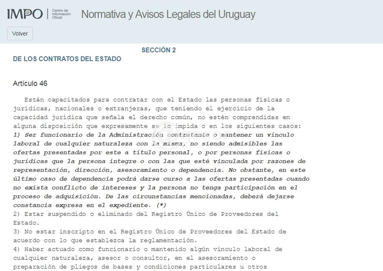 En los últimos días parece ser que algunos se enteraron que hay empresas que están contratando con ASSE que no están están en condiciones de hacerlo desde el punto de vista legal, algo que viene haciéndose desde hace años y que a partir de modificación en la normativa existente, con la Ley 19.355 en su artículo 3, que entró en vigencia el 1 de enero de 2016 que modifica el art. 46 del TOCAF en su numeral 1, establece: "Están capacitados para contratar con el Estado las personas físicas o jurídicas, nacionales o extranjeras, que teniendo el ejercicio de la capacidad jurídica que señala el derecho común, no estén comprendidas en alguna disposición que expresamente se lo impida o en los siguientes casos: