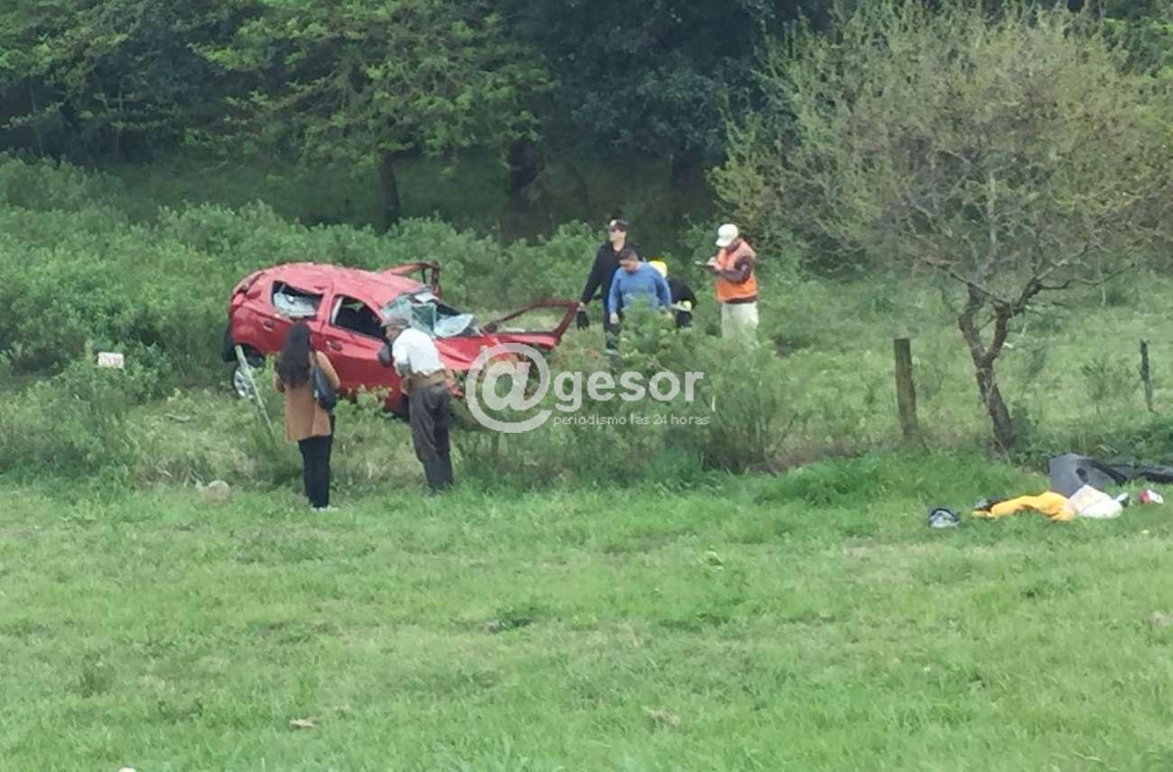 El hecho ocurrió a la altura del km 334 de ruta 21, cuando el vehículo se dirigía de Mercedes a Dolores, saliéndose de la carpeta asfáltica cruzó el descampado, rompió un alambrado y quedó metido dentro de un campo.