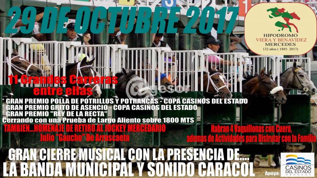 Entre ellas habrá tres grandes premios, una polla de potrillos y potrancas Copa Casinos del Estado; El Grito de Asencio también Copa Casinos del Estado; El Rey de la Recta; y cerrando con una prueba de largo aliento sobre 1800 metros.