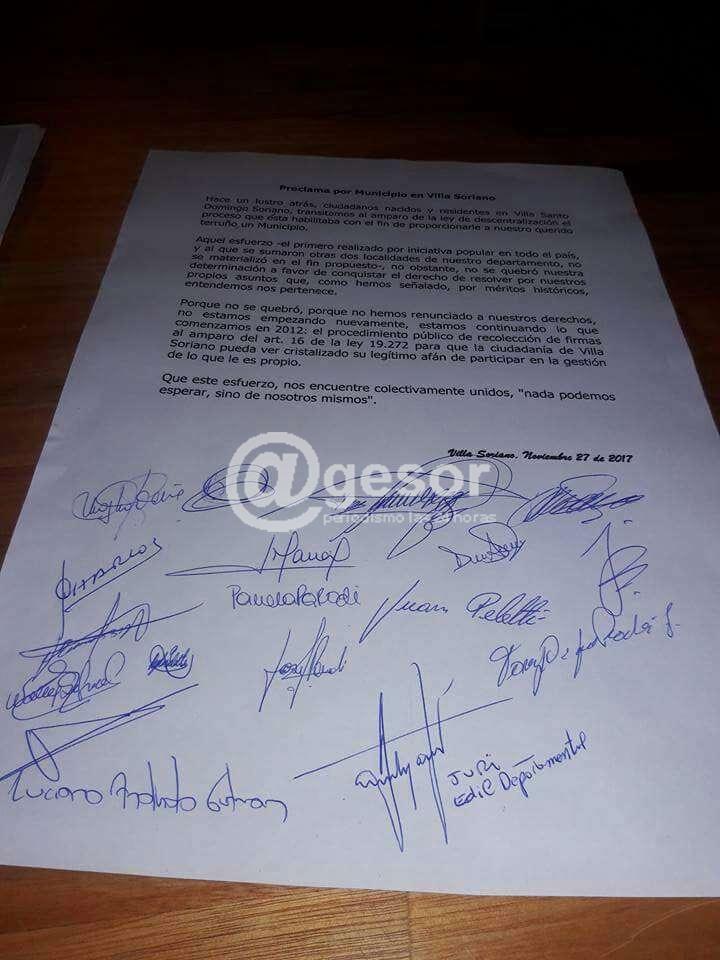 En un acto realizado en el aula polivalente de la Estación Fluvial de Villa Soriano se inició este lunes 27 el proceso de recolección de firmas para que la histórica localidad cuente con Municipio propio a partir de 2020.