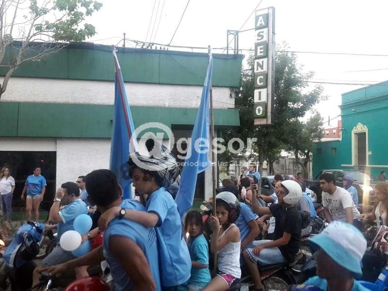 Desde todos los barrios salieron simpatizantes con camisetas y banderas festejando el título como mejor de la temporada, en el momento la caravana pasa frente a la sede del Club Asencio.