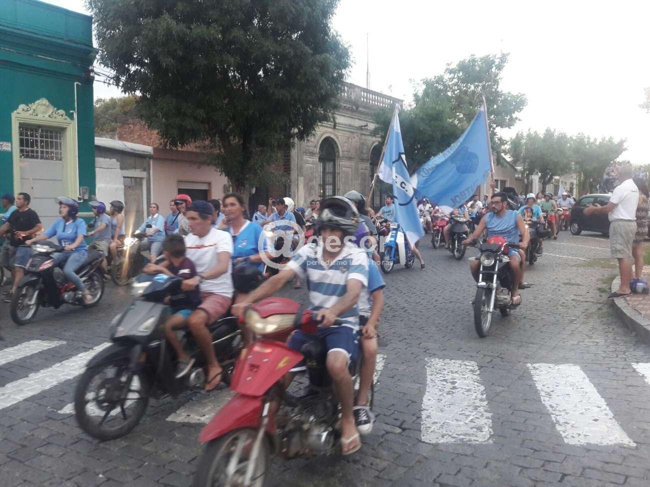 La caravana que comprendía algunas cuadras, estaba formada por autos, camionetas, motos. De las ventanas salían banderas celestes los rodados, de todo tipo y color, iban con hinchas eufóricos, que dieron rienda suelta a un título esquivo durante muchos años que hizo se olvidar algún mal rendimiento del equipo, que más de una vez los había hecho irse masticando bronca de la cancha, para apoyar a los suyos.