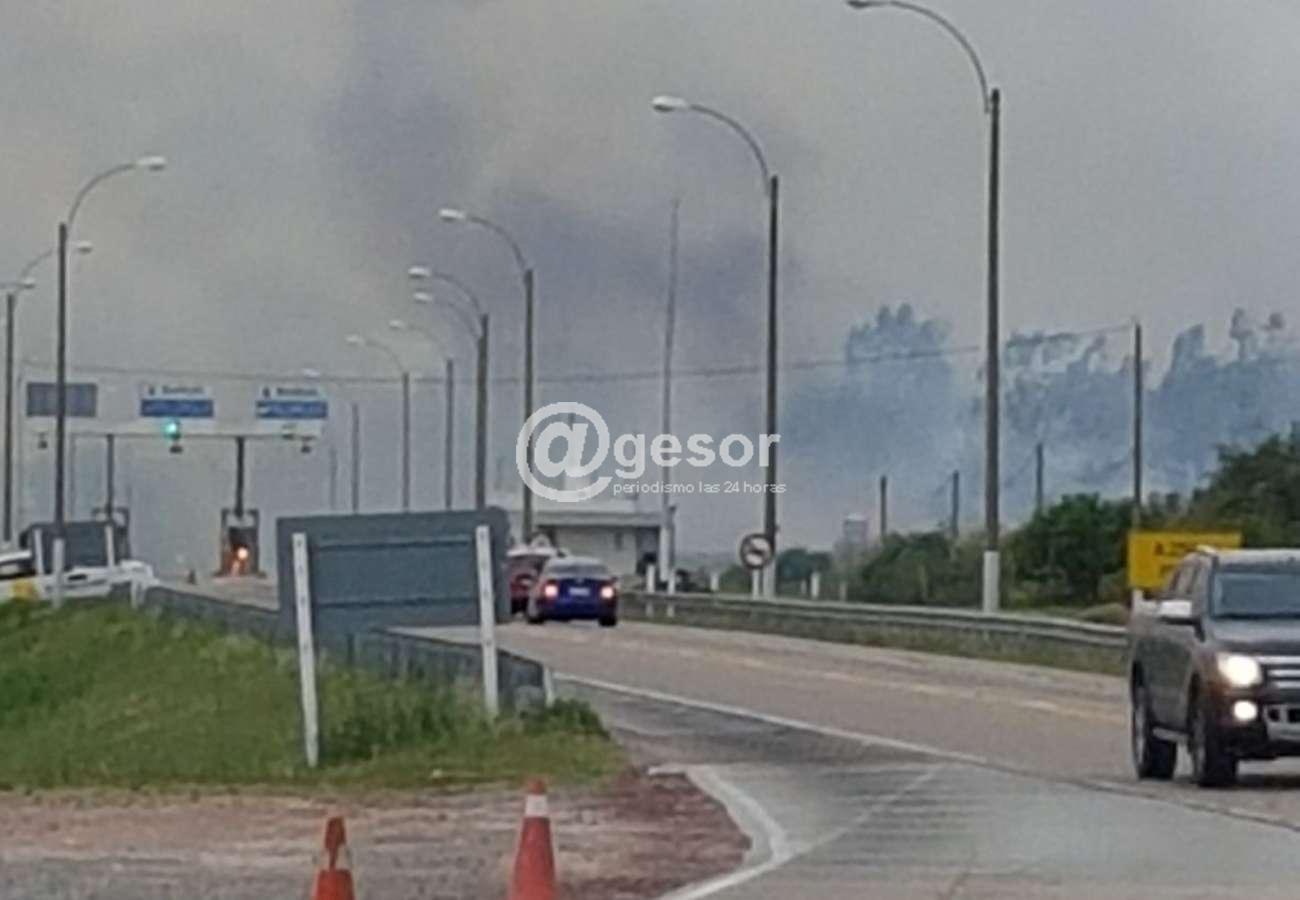 Ha sido dura la labor de Bomberos en la zona de Los Arrayanes en la lucha cotra el fuego que este jueves consumió entre 30 y 40 hás de monte, que en la noche hubo algunos focos que se reactivaron y nuevas intervenciones de dotaciones de Mercedes volvieron a extinguir, pero el hecho que durante las últimas 24 horas el viento ha sido fuerte ayudó a que se reavivara, lo que ocurrió próximo al mediodía de este jueves y en las primeras horas de la tarde de este viernes, ya con más fuerza. El fuego comenzó a "caminar" hacia la zona de ruta 2, llegando hasta cercanías del puesto de peaje ubicado a la altura del km 284,500 debiendo retirarse momentáneamente el personal por la humareda intensa que se registraba. Hubo ratos en que el tránsito estuvo interrumpido, y luego fue rehabilitándose lentamente aguardándose como ayuda la lluvia prevista por el alerta amarilla efectuatada por INUMET para esta zona del país. En el lugar también trabajó junto a las dotaciones de Bomberos de Mercedes, la Hidrotransportada con un helicóptero. A las 17.24 horas comenzó a llover en Mercedes!!! para aliviar la situación en la zona.